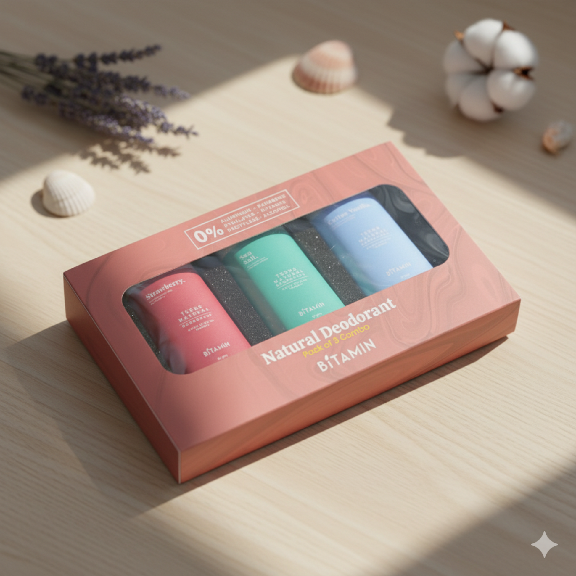 This expertly curated gift pack is the perfect present for kids or Teens in between age (10-18). With carefully selected items, it offers Natural deodorant pack of 3 - Strawberry , Cotton Vanilla , Sea salt 20 g each our best range in gifting experience.