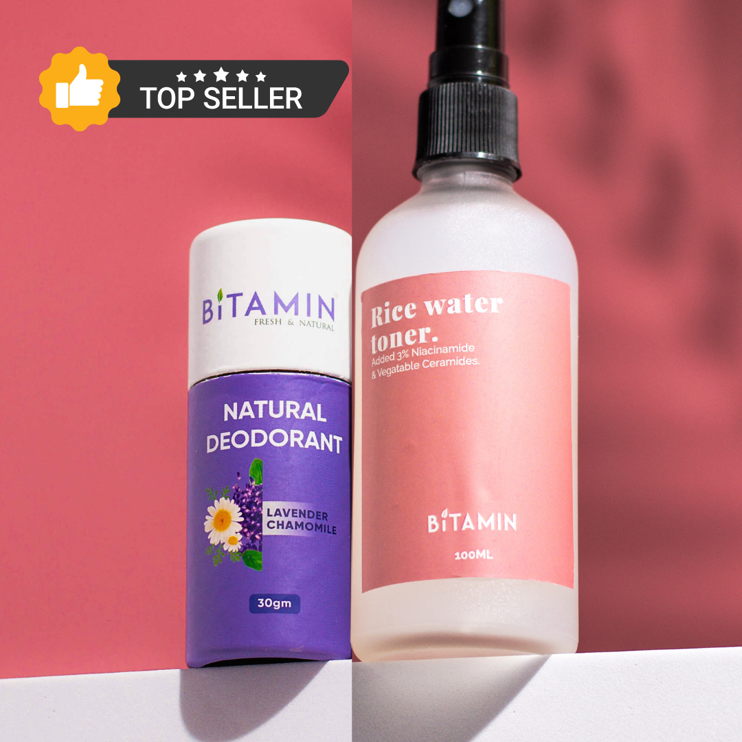 Our Rice Water Toner hydrating toner formulated with 25% Japanese rice extract, 2% Niacinamide, 1% Ceramides & 1% licorise extract % Vitamin B5. It refreshes and cleanses skin while restoring balance to the pH level. An all-natural powerhouse, Rice Water Toner is gentle, reduce pigmentation and keeps hydration for long hours.